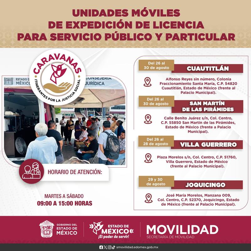 Las caravanas itinerantes visitarán Cuautitlán, San Martín de las Pirámides, Villa Guerrero y Joquicingo, facilitando el trámite sin necesidad de trasladarse a oficinas centrales de movilidad.