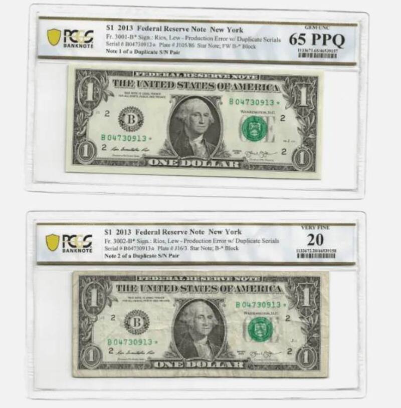 De los 6.4 millones de billetes de 1 dólar con estas características impresos accidentalmente con número su de serie coincidente, solo se han recuperado 9.