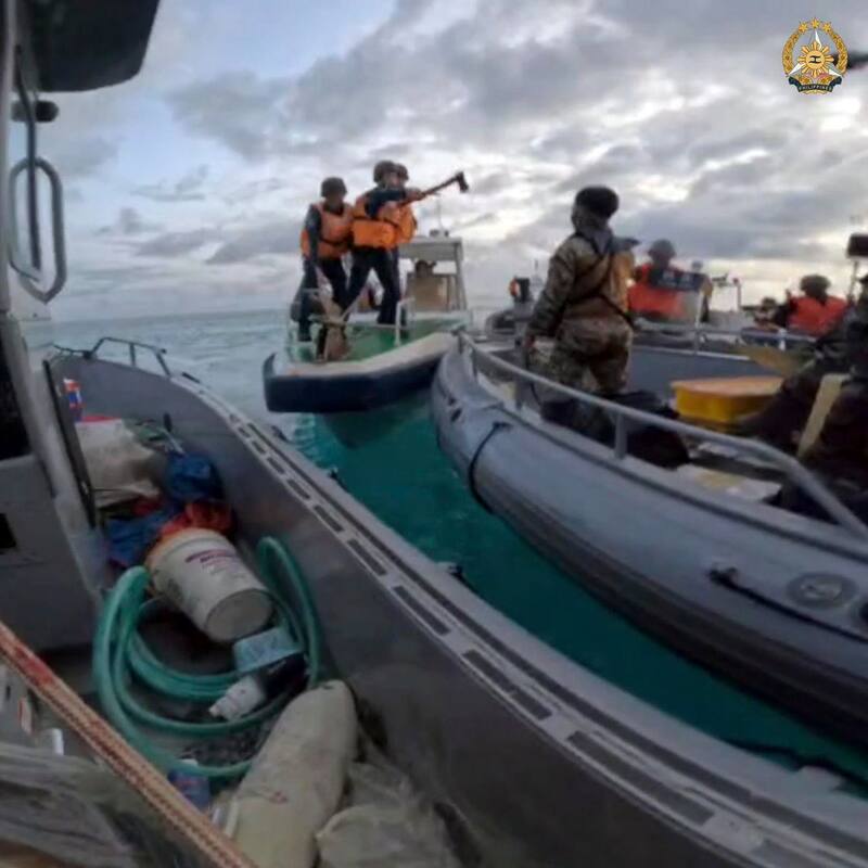 Filipinas, por su parte, divulgó vídeos y fotografías en las que se aprecia cómo guardacostas chinos cercan barcos de abastecimiento filipinos y empuñan objetos punzantes para perforar sus botes y amedrentar a los marineros filipinos.
