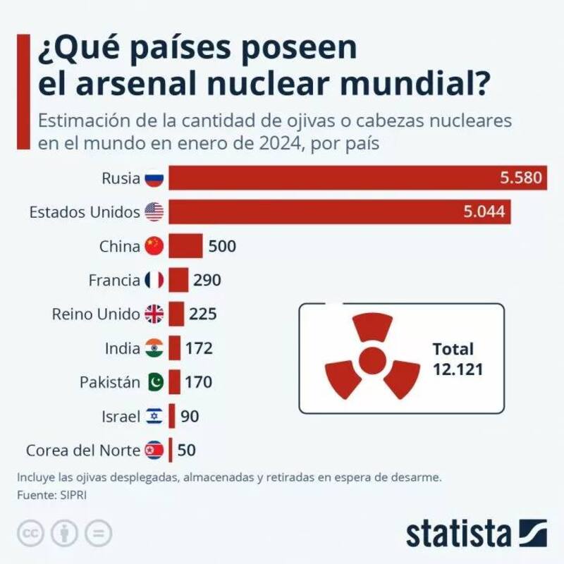 Aunque Israel nunca ha confirmado oficialmente su capacidad nuclear, informes del SIPRI estiman que posee 90 ojivas o bombas nucleares. En este contexto, los 12,121 ojivas nucleares en el planeta y los nueve países con capacidad de lanzar ataques atómicos hacen que el equilibrio global penda de un hilo. Los 70 misiles nucleares israelíes no son meras cifras: son advertencias.