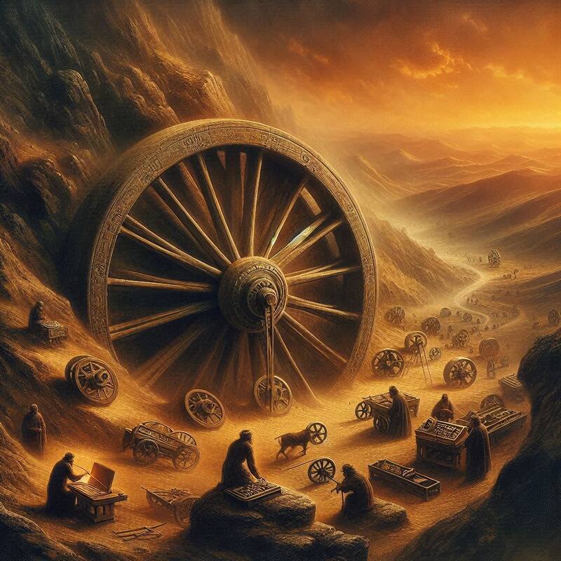 Los objetos circulares con un centro hueco unidos a una barra (la rueda y el eje) son uno de los inventos más importantes de la historia tecnológica, al transformar el movimiento lineal en rotativo y con ello hacer que se movieran partes de artefactos