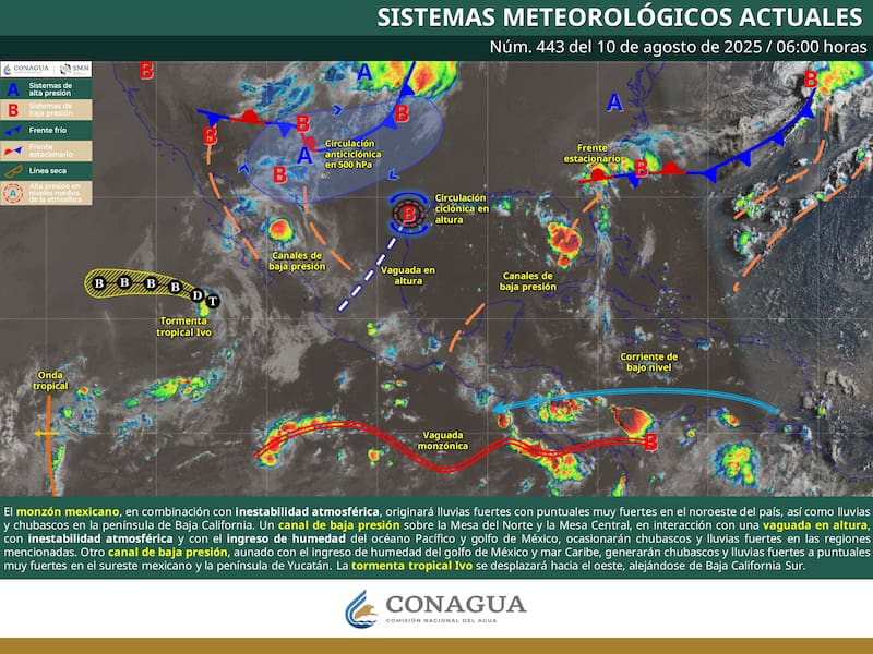 El Servicio Meteorológico Nacional (SMN) envió una advertencia a todos los habitantes de México ante una serie de inclemencias climáticas que se registrarán en distintos puntos del país durante el domingo 10 de agosto.