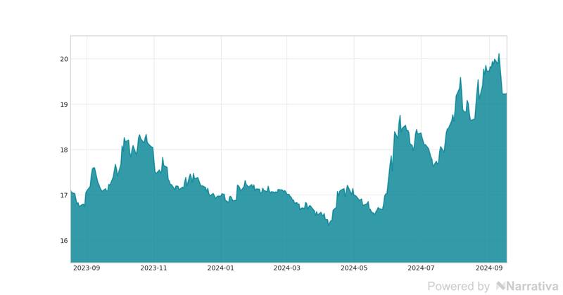 Durante el día de ayer, este activo presentó un costo máximo de 19.28 pesos y un mínimo de 19.21 pesos. En la última semana, la cotización del dólar ha experimentado una caída del 4.22%, mientras que en el último año ha mostrado un aumento del 6.49%. Esta evolución refleja una tendencia a la baja reciente, a pesar de un crecimiento general en el valor del dólar a lo largo del año.