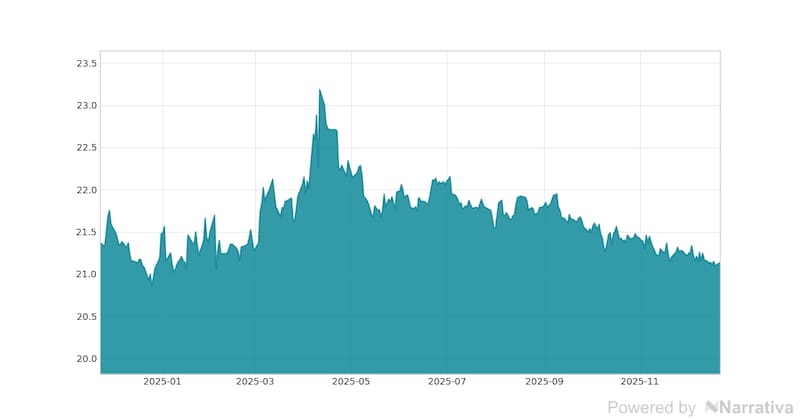 Durante el día de ayer, este activo presentó un costo máximo de 21.16 pesos y un mínimo de 21.11 pesos.