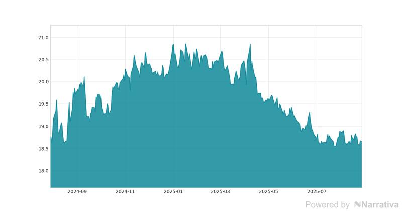 Durante el día de ayer, este activo presentó un costo máximo de 18.8 pesos y un mínimo de 18.64 pesos.