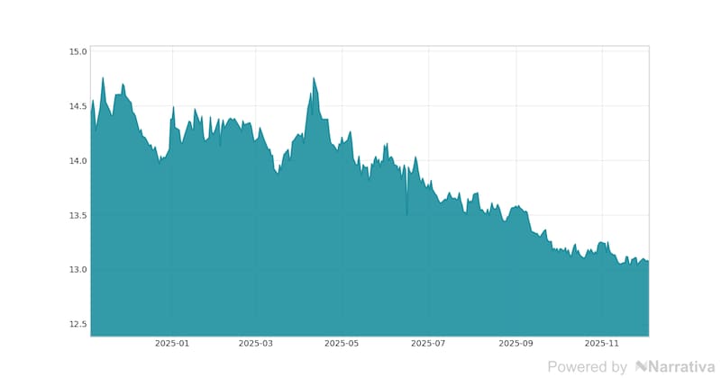 Durante el día de ayer, este activo presentó un costo máximo de 13.12 pesos y un mínimo de 13.1 pesos.