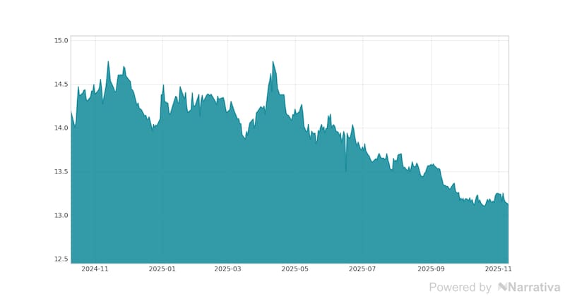La cotización del dólar canadiense alcanzó los MXN 13.12 en la sesión de cierre de mercados del lunes, 10 de noviembre de 2025. Esta cifra refleja una variación del -0.12% en comparación con su costo al inicio de la jornada.