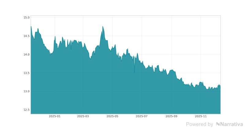 Este viernes, 12 de diciembre de 2025, la cotización del dólar canadiense llegó a 13.083 MXN al cierre de los mercados en México. En base a esta cifra, el cambio que este activo ha tenido respecto a la sesión de inicio es de -0.64%.