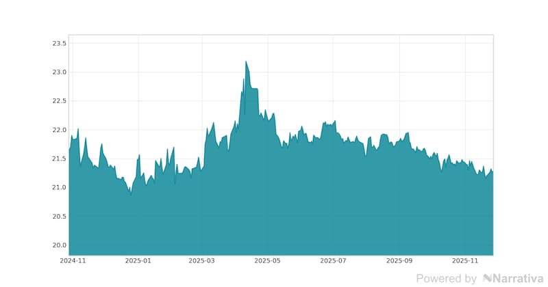 La cotización del euro alcanzó los MXN 21.27 en la sesión de cierre de mercados del jueves, 27 de noviembre de 2025. Esta cifra refleja una variación del 0.05% en comparación con su costo al inicio de la jornada.