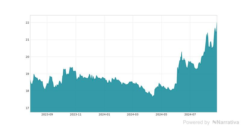 Durante la jornada de ayer, este activo registró un valor máximo de 22.09 pesos y un mínimo de 21.66 pesos. En la última semana, la cotización del Euro ha aumentado un 4.29%, mientras que en el último año ha experimentado un incremento del 17.30%. Esta evolución muestra una tendencia alcista en el mercado de divisas para la moneda europea.