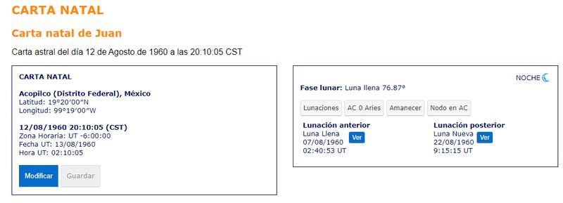 En este sitio puedes consultar tu carta natal de forma fácil, rápida, gratuita y online. El sitio explica que solo hay que "ingresa los datos que te pide el programa y obtendrás al instante la posición de planetas en signos y casas en el momento de tu nacimiento, así como los aspectos más importantes entre los elementos de tu carta natal".