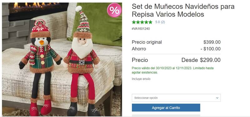 Los más económico que se puede encontrar en la tienda es una lata de galletas barquillo de un kilo para compartir con todos los seres queridos. Mientras que los adornos parten en 299 pesos de un set de muñecos navideños para repisa.