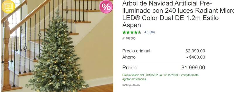 El clásico pino para el centro de la sala tiene un precio de 1999 pesos con luces incluidas y de 1,20 metros de altura y de armado automático.