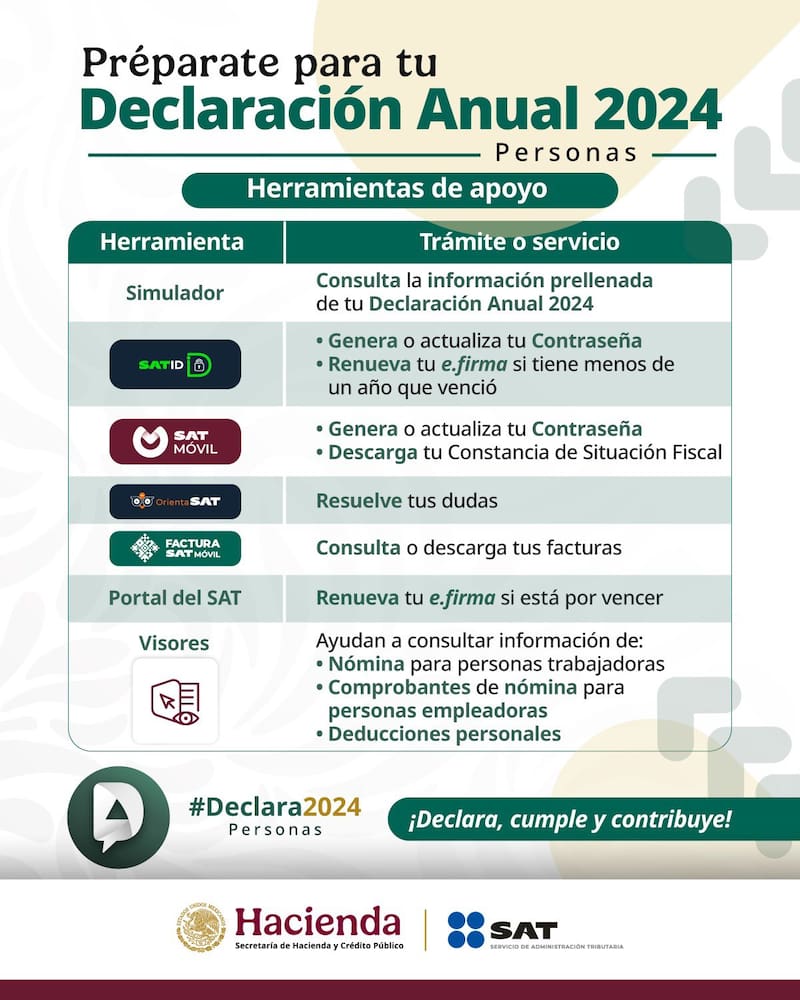 "El SAT recuerda a los contribuyentes que el plazo para presentar la Declaración Anual 2024 de personas comprende del 1 al 30 de abril", sugiere el SAT en su comunicado oficial.