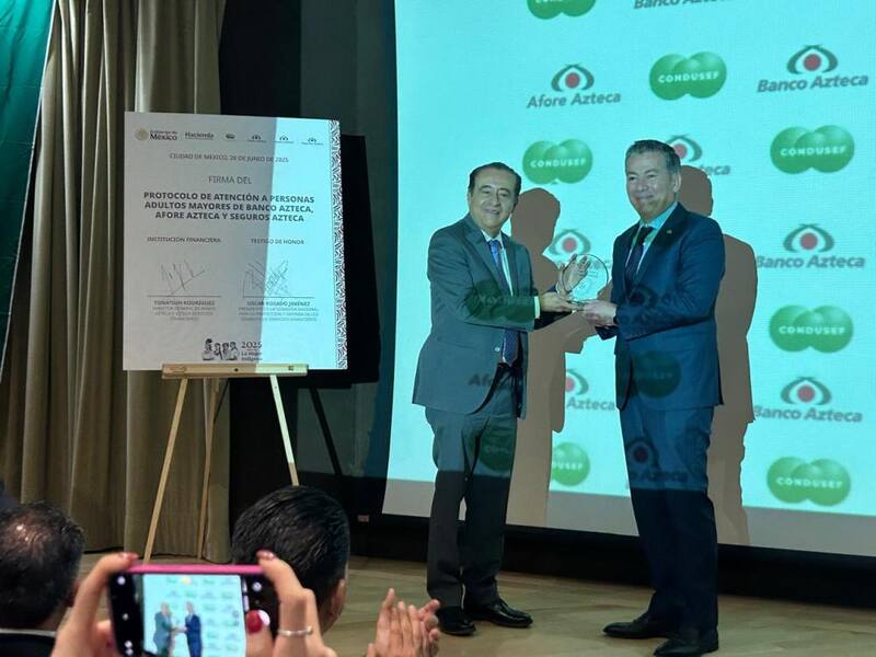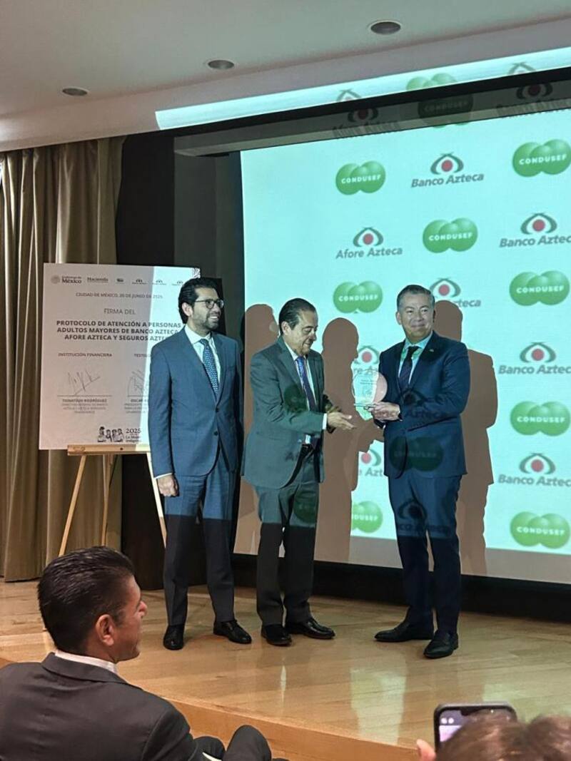Banco Azteca, junto con Afore Azteca y Seguros Azteca, firmaron el pasado 20 de junio el Protocolo de Atención a Personas Adultas Mayores, con el objetivo de reforzar el acompañamiento a este grupo de usuarios. La Comisión Nacional para la Protección y Defensa de los Usuarios de Servicios Financieros (CONDUSEF) otorgó una insignia por estas acciones.