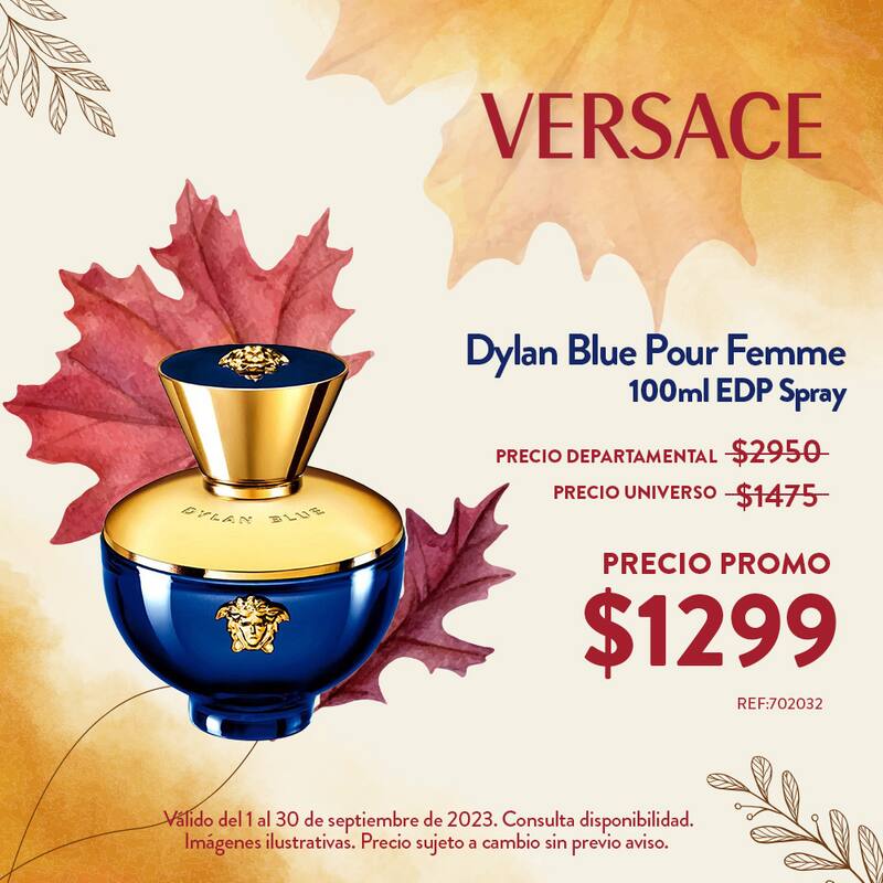 - Dylan Blue Pour Femme, de Versace: 1299 pesos mexicanos (con un precio departamental de hasta 3000 pesos).