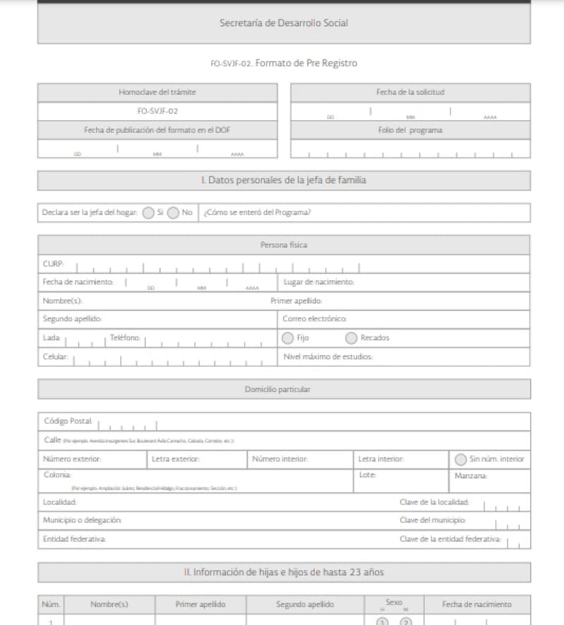 La Secretaría de Bienestar pide que se complete un formulario de inscripción de comprende dos hojas con información básica.