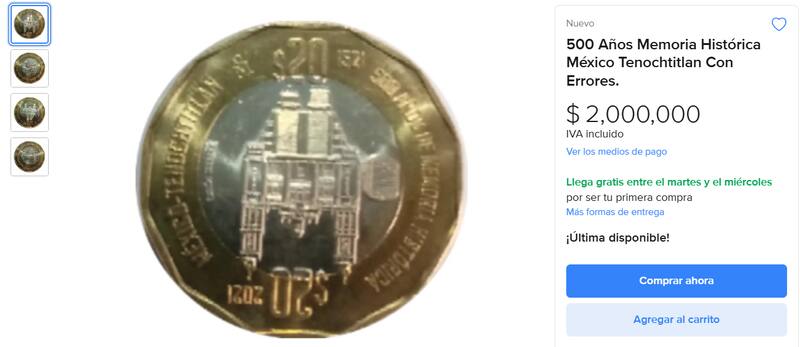Originalmente, esta divisa tenía un valor nominal de 20 pesos, pero su relevancia histórica y estética ha provocado que su precio se dispare a cifras impresionantes, alcanzando los 2,000,000 de pesos en el mercado actual.