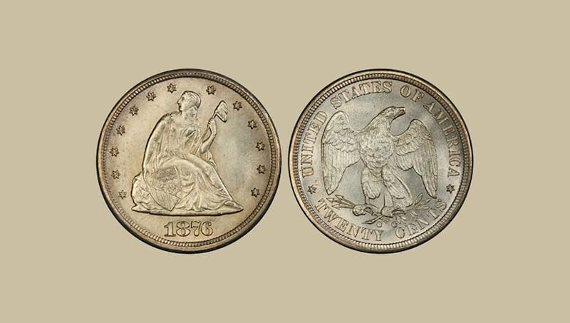 El estado de conservación y la procedencia le dan valor a esta moneda de 20 centavos de dólar acuñada en 1876 en la Casa de la Moneda de Carson City. La divisa, que tuvo una circulación breve, tiene una llamativa historia porque su diseño generó confusión entre los usuarios: