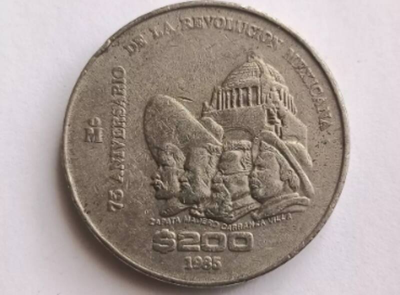 Se trata de una moneda de 200 pesos, una pieza conmemorativalanzada en 1985 por el Banco de México para celebrar el 75 aniversario de la Revolución Mexicana. Estas son sus características más importantes: