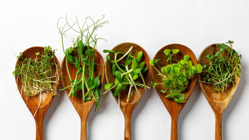 - Coloca las hojas o brotes de alfalfa en una taza.