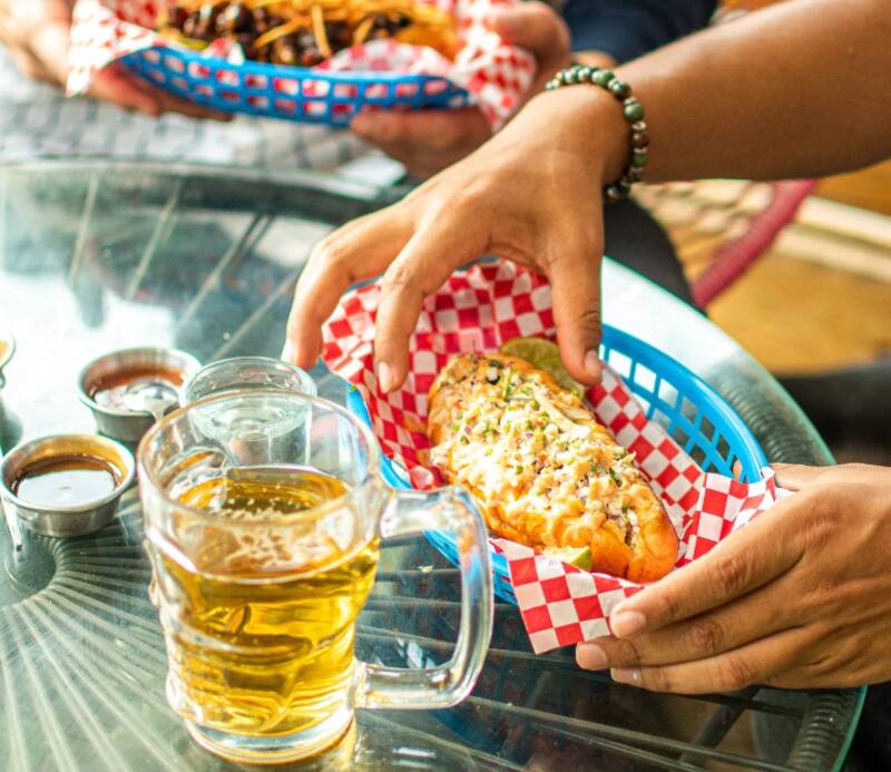 Entre los favoritos del menú se encuentran platos como hot dogs de aguachile y pollo. Además, el ambiente es relajado y PET FRIENDLY, donde podrás conocer a Cecilia y Camila, las adorables guardianas del bar.