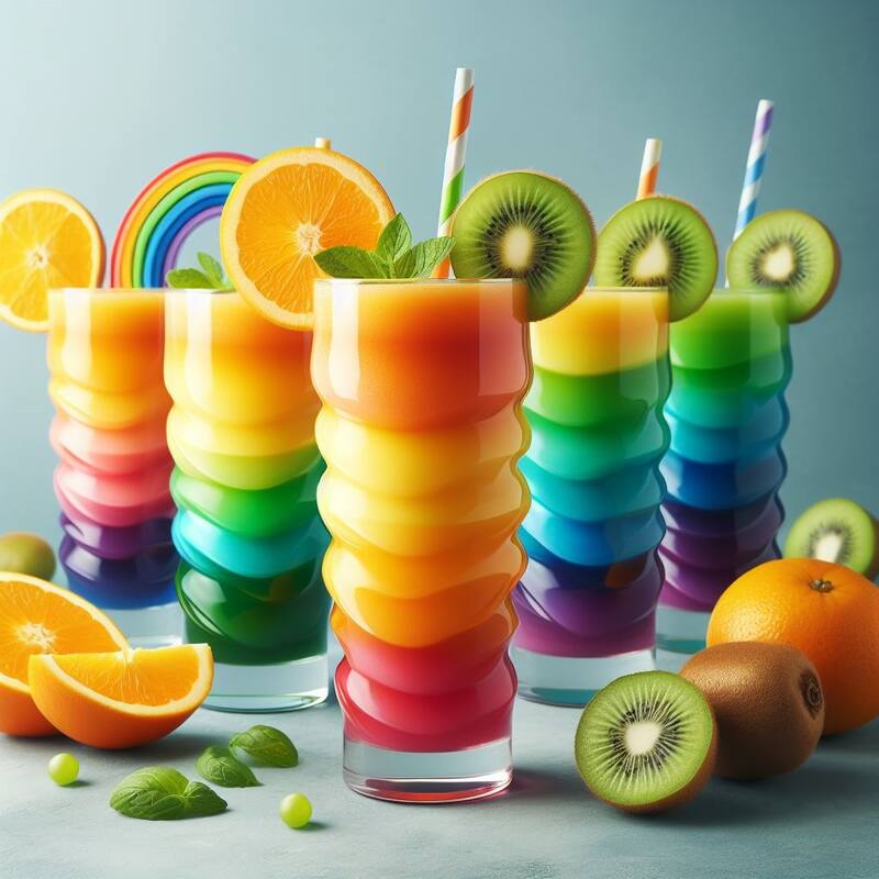 Disfruta de este jugo multivitamínico lleno de colores y sus nutrientes Este arcoíris de frutas proporcionará una mezcla deliciosa y saludable para nutrir tu cuerpo con vitaminas y antioxidantes.