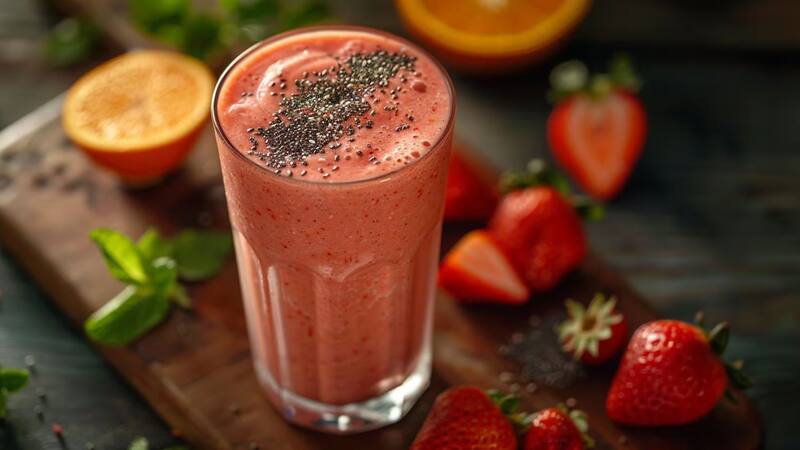 Incorporar un licuado de fresa, naranja y chía a la dieta diaria, no solo deleita el paladar, también ofrece múltiples beneficios para la salud, que pueden desglosarse según cada ingrediente: