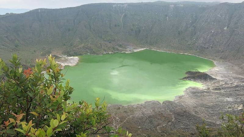 El cráter es un valle de un kilómetro de diámetroy contiene aguas sulfurosas de tonalidades verdes y amarillas. Se puede nadar en ellas, pero con extrema precaución y acompañamiento de personas calificadas para tal excursión.