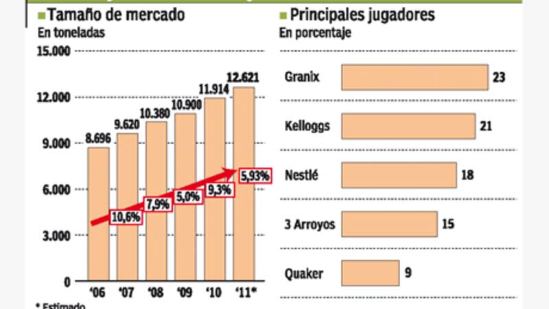Hasta ahora, cinco eran las empresas que se repartían una torta que anualmente nueve $ 360 millones: Pepsico con su controlada Quaker; Kellogs; Nestlé; Granix, propiedad de un grupo religioso adventista, y Granja Tres Arroyos.