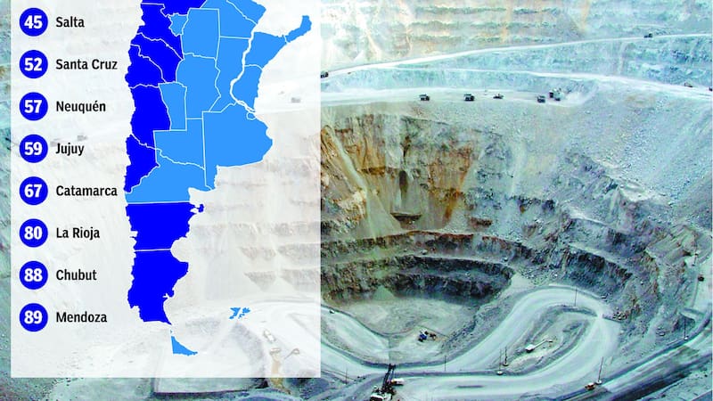 Pero dentro del país, la realidad de cada provincia es diferente. El ranking del Instituto Fraser está dividido en jurisdicciones para los países que cuentan con mayores recursos y zonas explotadas, y allí se evidencian las diferencias internas.