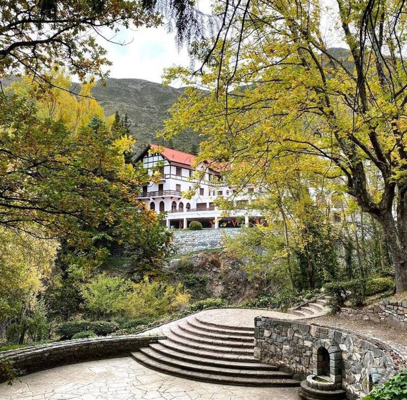 El tradicional hotel de 30 habitaciones -cuya fachada ilustra las etiquetas del agua mineral- fue inaugurado en 1940 y funcionó hasta 1979; desde entonces, permanece cerrado al público. Sólo se pueden visitar sus jardines.