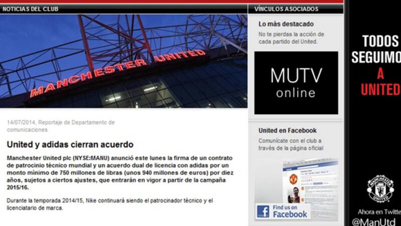 Luego de ser el sponsor oficial de las dos selecciones finalistas en el Mundial de Brasil (Argentina y Alemania), el gigante de ropa deportiva Adidas consiguió sellar un histórico acuerdo de patrocinio con Manchester United de Inglaterra tras desembolsar 940 millones de euros.