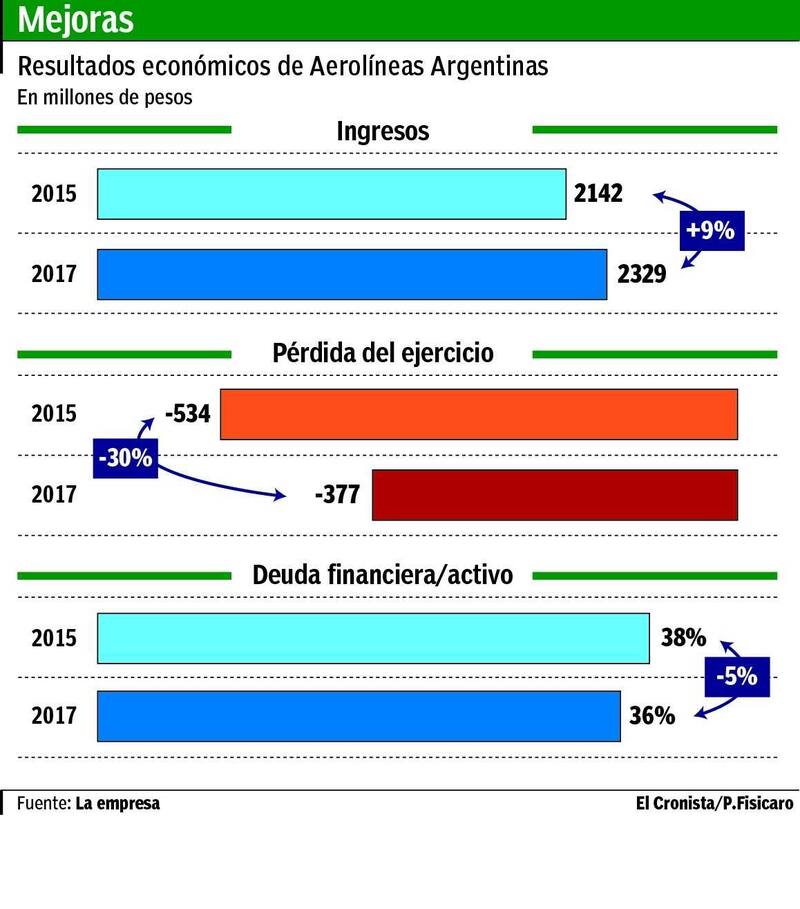 Aunque los números son del período de 2017, la presentación realizada hace la comparación con 2015 "para poder compararlo con el último año de la gestión anterior". En ese marco, los ejecutivos de la compañía explicaron que el grupo "creció 11% en la flota y 10% en la medición de asientos por kilómetros, lo que sería la capacidad instalada de la compañía".