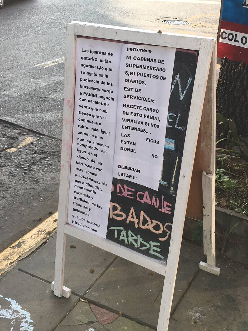 El fin de semana, la asociación gremial difundió un comunicado en el que anunció la concentración de este lunes y apuntó contra las grandes cadenas. "¡La paciencia se acaba! ¡La tolerancia también! Señores de Panini, entreguen las figuritas a los kiosqueros y dejen de dárselas a los supermercados Jumbo, a las aplicaciones como PedidosYa, a estaciones de servicio Axion y a cadenas de kioscos que no comercializan figuritas de las otras colecciones durante cuatro años", afirma el texto, que muchos kioscos y puestos de diarios replicaron por su cuenta.