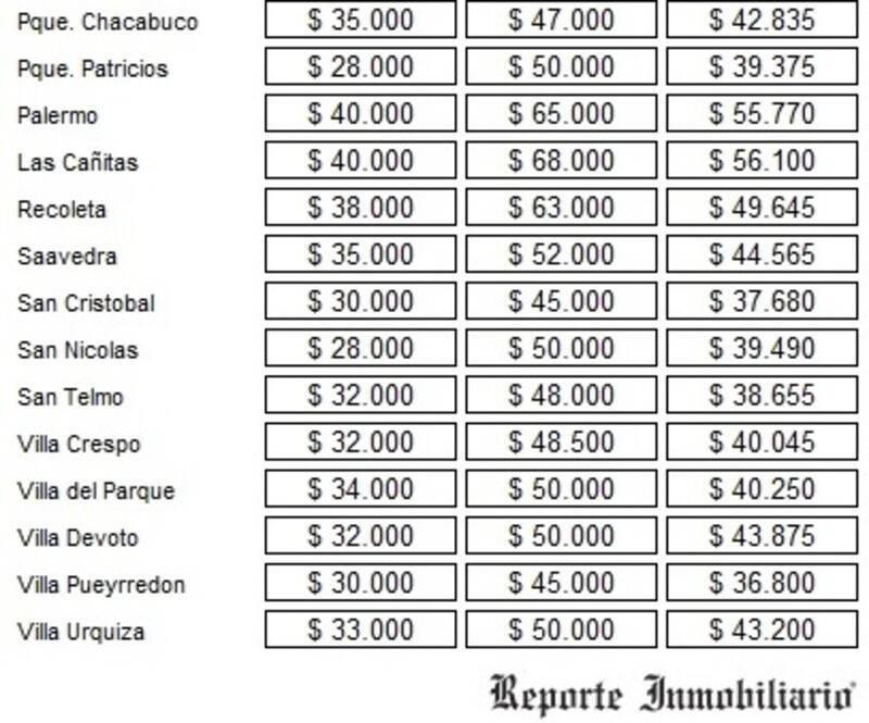 Mientras que los precios promedios son de $52.000 en barrios del corredor norte porteño como Belgrano o Saavedra.