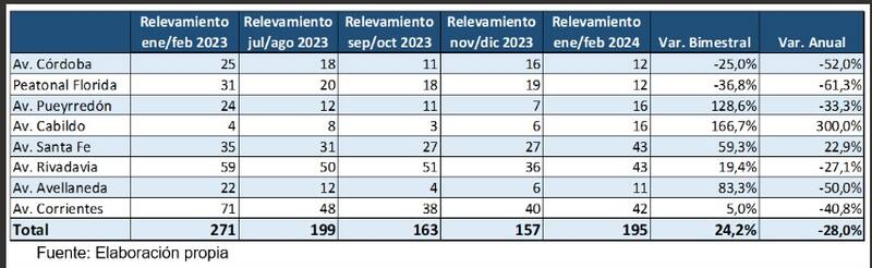En el primer bimestre de 2024, se detectaron 195 locales en venta, alquiler o cerrados en las principales calles comerciales. En el bimestre anterior, ese número había sido de 157 negocios disponibles.