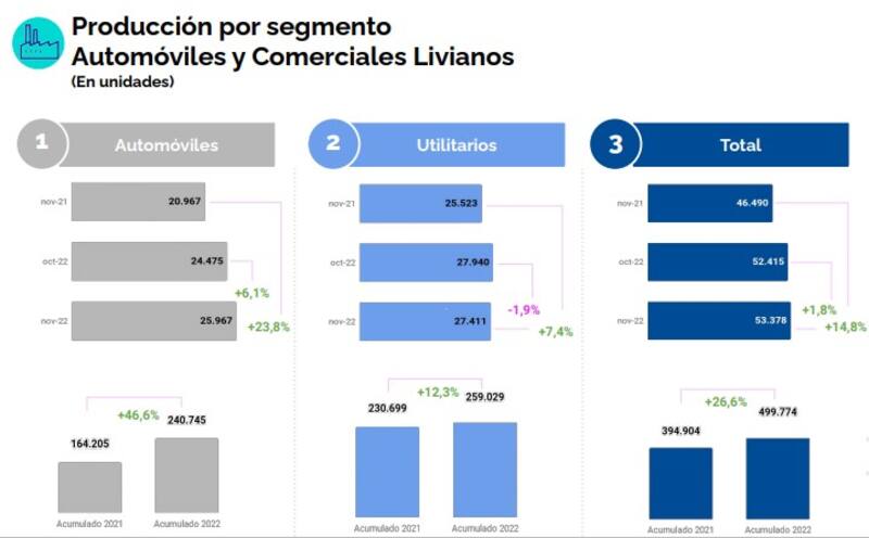 En el acumulado de enero a noviembre, el sector produjo 499.774 unidades (autos y utilitarios), lo que marcó una mejora de 26,6% en comparación con las 394.904 unidades que se produjeron en el mismo período de 2021.