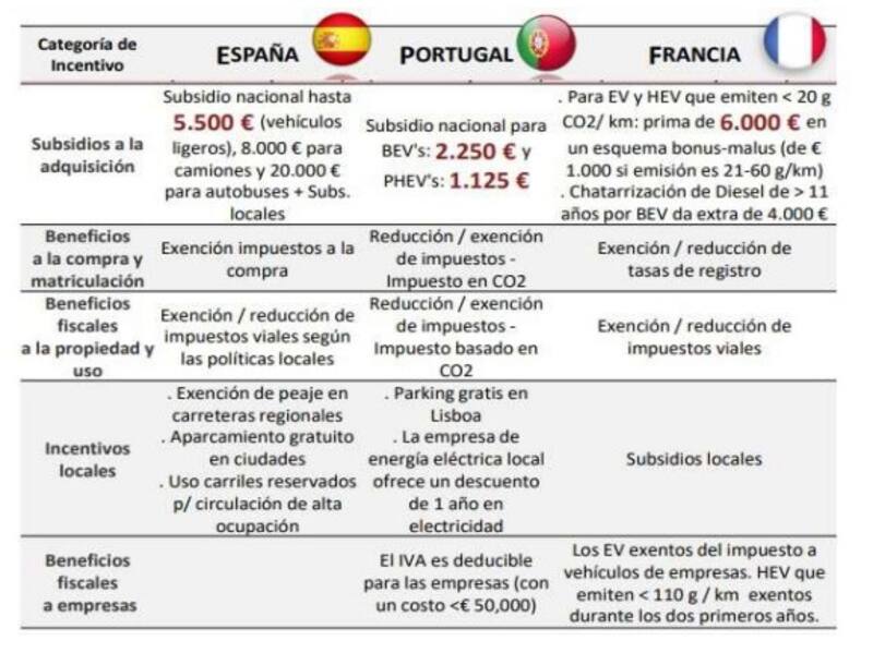 En Europa todavía hay más incentivos. En España hay un subsidio nacional para la compra de estos autos con nuevas tecnologías (también para camiones y buses). No pagan impuesto a la compra, ni peajes y tienen carriles reservados para circular.
