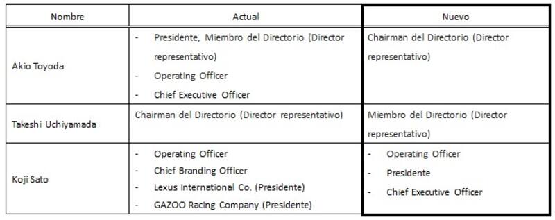 Así será el nuevo directorio de Toyota y sus responsabilidades