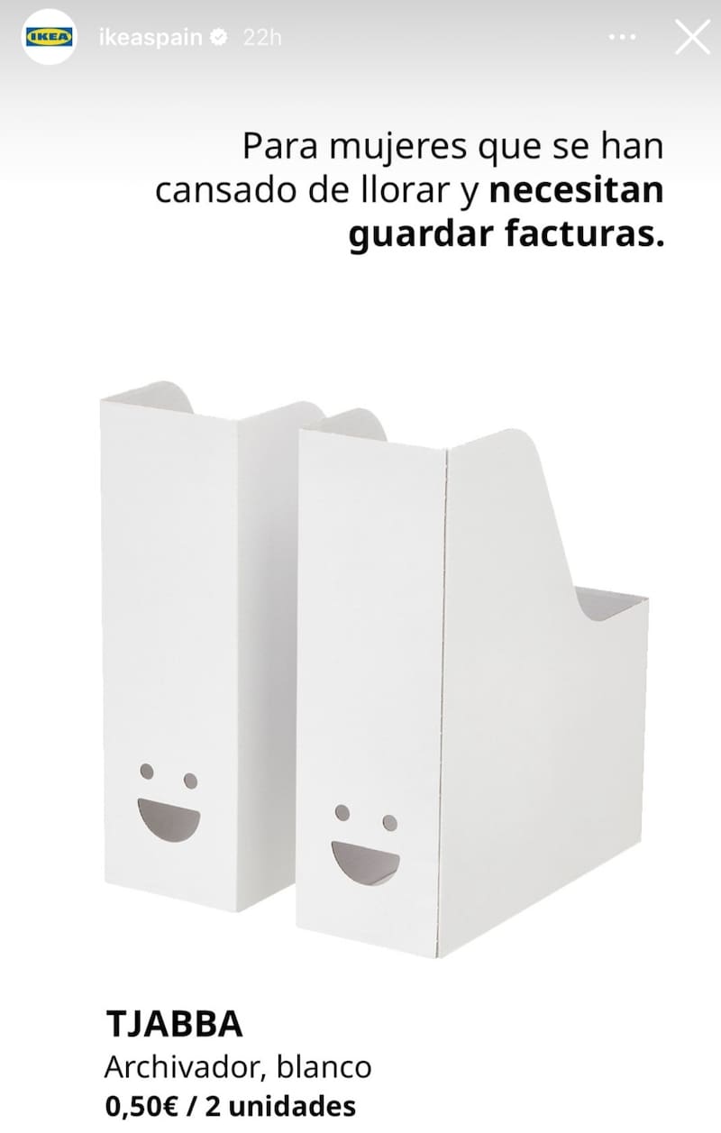 También la casa sueca de objetos para el hogar Ikea recomendó uno de sus productos para ordenar las facturas: "Para mujeres que se han cansado de llorar y necesitan guardar facturas", haciendo alusión a la frase de la canción "Las mujeres ya no lloran, las mujeres facturan". La filial española promocionó así archivadores a 0,5 euros.