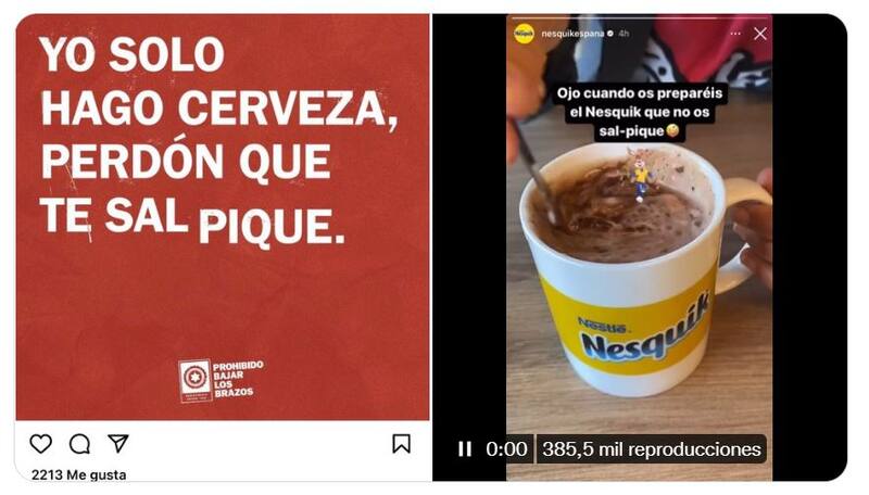 En alusión a la capacidad de poder 'salpicar' con sus productos,la firma cervecera española Estrella Galicia posteó: "Yo solo hago cerveza, perdón que te salpique". En esa línea, la filial ibérica de la marca de chocolatadas Nesquik advirtió: "Ojo cuando os preparéis el Nesquik que no os sal-pique".