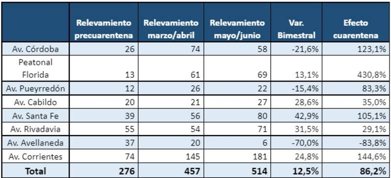 Según se desprende del informe de la CAC, el número de locales vacíos (en alquiler, venta o, simplemente, sin actividad) en las principales áreas comerciales de la Ciudad registró una suba de 86,2% en relación a lo que había sucedido antes de la cuarentena (es decir, en el primer bimestre de 2020).