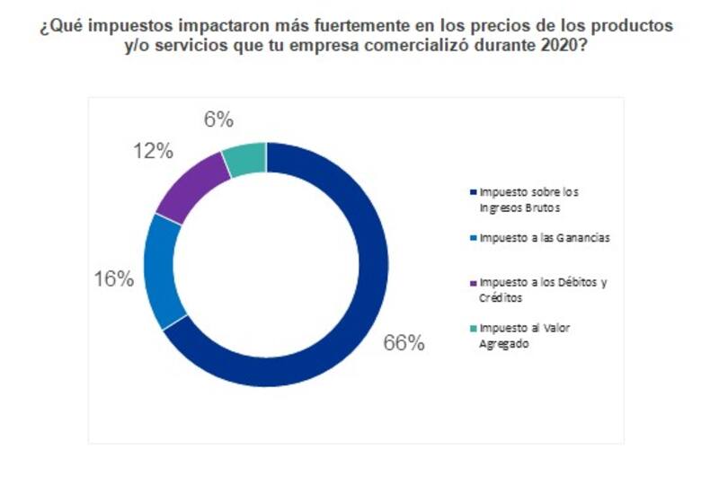 Al igual que el año anterior, el impuesto que más incide para los empresarios en la formación de los costos y precios de productos y servicios es el de Ingresos Brutos. Ese tributo había sido el más votado (50% de los encuestados) en relación a la situación que las compañías registraron en 2019; y en 2020 este valor subió al 66%, lo que refleja la creciente importancia que le adjudican las empresas.