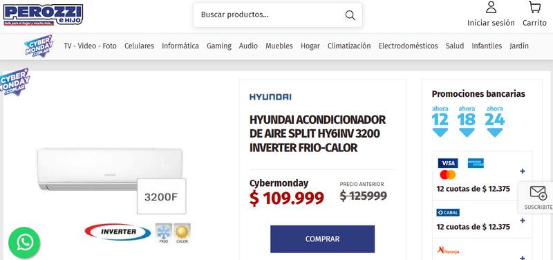 En primer lugar se encuentra este aire acondicionado, de Hyundai, a $ 110.000.Las formas de pago son las siguientes: