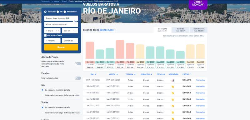 El sitio web de Turismo City ofrece una amplia variedad de horarios y fechas de ida y vuelta a Río de Janeiro, saliendo desde Buenos Aires. Los precios van desde los $ 69.000 en adelante. Hacé click acá y enterate de todas las promociones que hay.