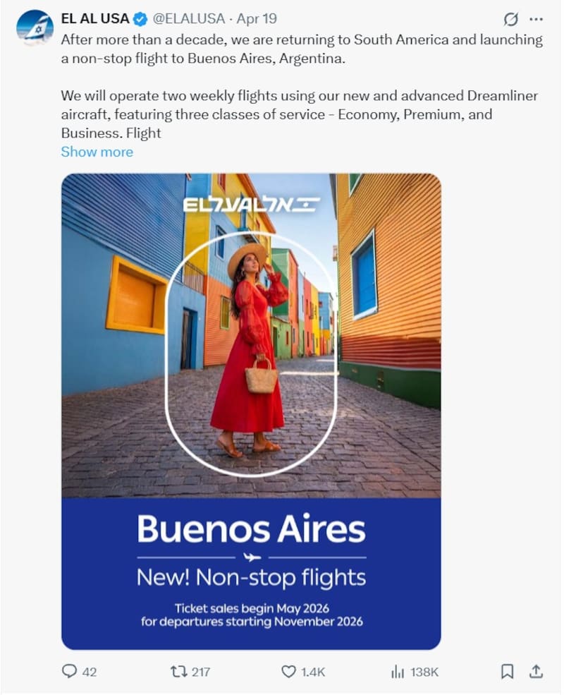 Fuentes cercanas a la aerolínea comentaron a El Cronista que el acuerdo también apunta a captar a la comunidad argentina residente en Israel -que supera las 100.000 personas a marzo de 2026, según datos del portal Swissinfo-, además de potenciar el turismo religioso. En ese sentido, destacaron que la lupa está puesta sobre el segmento evangélico, con fuerte presencia en Argentina y una demanda sostenida de peregrinaciones a Tierra Santa.