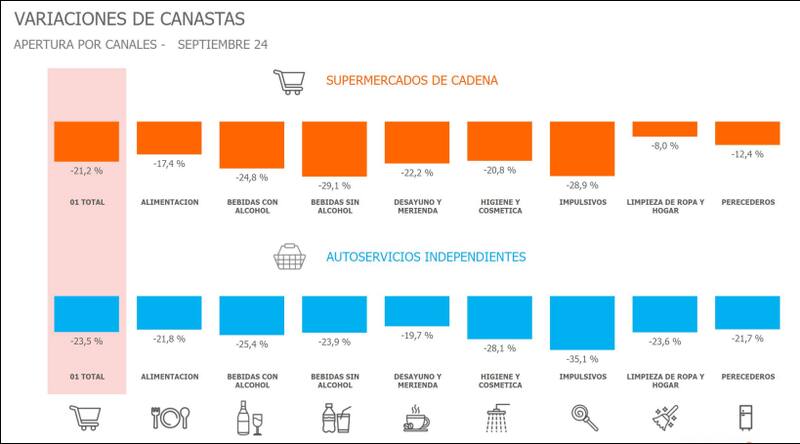 Por su parte, el relevamiento de self service de consultora Scentia, dio cuenta de que tanto en supermercados como en autoservicios -kioscos, almacenes, minimercados-, la compra de impulsivos cayó un 28,9% y 35,1%, respectivamente.