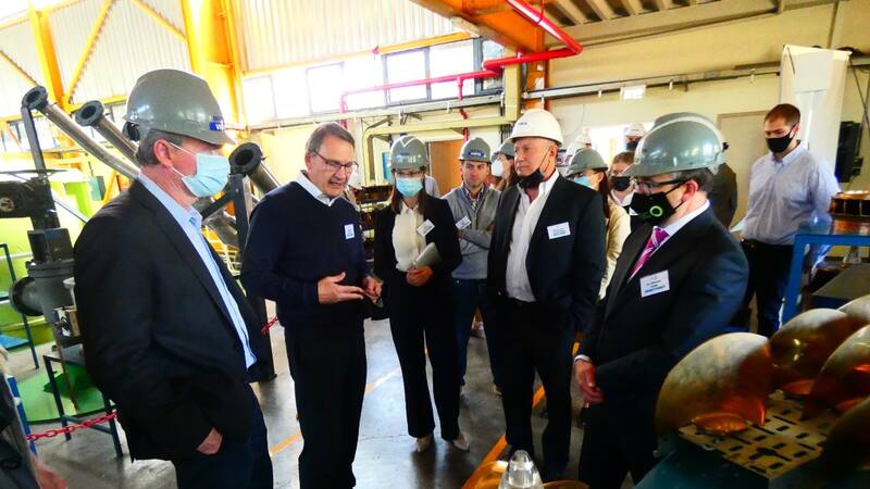 La delegación australiana visitó este jueves el Centro de Desarrollo Tecnológico de Impsa, en Godoy Cruz. La integraron Michael Dolan, director de Ciencia y Tecnología de Fortescue Future Industries (FFI), y Stanislaus Knez, head of Global Technology Hubel de la empresa. Recorrieron el Módulo Tecnología, el Laboratorio Hidráulico y la Nave 1 del centro. Además de reunirse con ejecutivos de la compañía anfitriona, se entrevistaron con autoridades del Instituto Nacional de Tecnología Industrial (INTI), de la Cámara de Industriales de Proyectos e Ingeniería de Bienes de Capital de la República Argentina (Cipibic) y de la Asociación de Industriales Metalúrgicos de Mendoza (Asinmet).