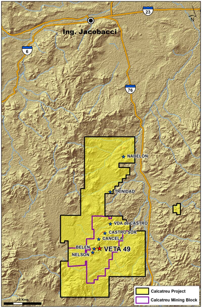 Calcatreu es el proyecto insignia de la compañía, ubicado a unos 85 kilómetros al sur de la localidad de Ing. Jacobacci. Era propiedad de Pan American Silver hasta que se lo compró en 2018 y (por u$s 15 millones) desde entonces se ha dedicado a obtener los permisos para avanzar hacia la producción.